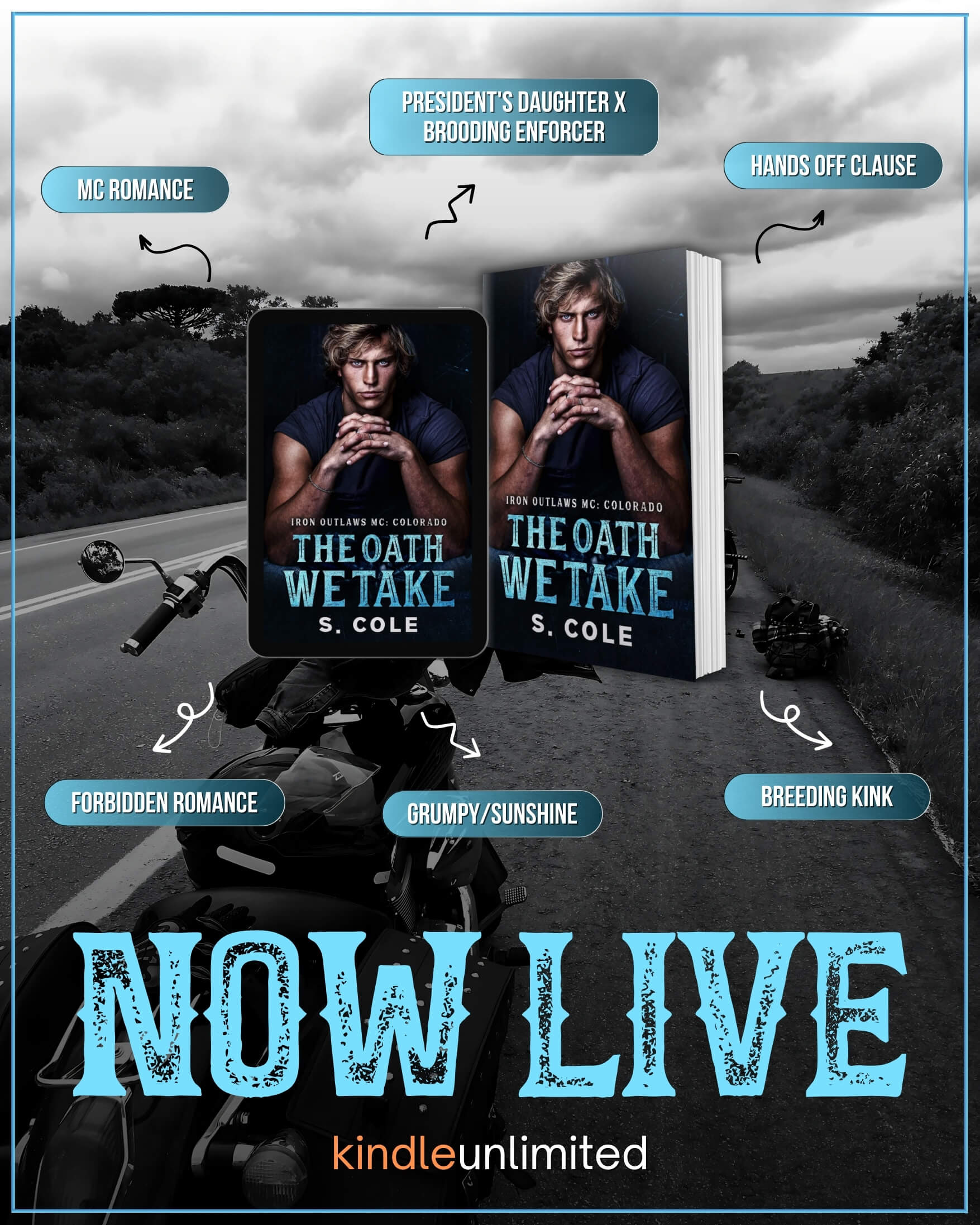The Oath We Take is book two in the Iron Outlaws MC Colorado Series. This is a second chance, forbidden, grumpy/sunshine romance. This story focused on Atom a.k.a. Hudson and Ember.