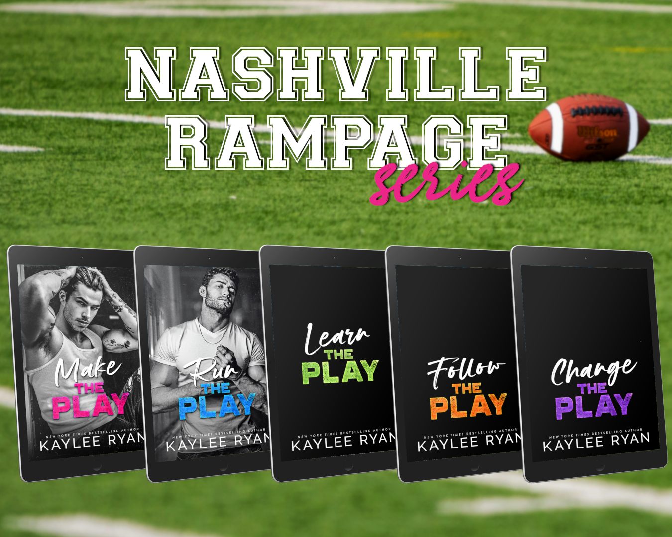 NYT and USA Today Bestselling author Kaylee Ryan brings you a new standalone series surrounding the Nashville Rampage football team. Run the Play is a fake dating, found family, workplace, he falls first romance.